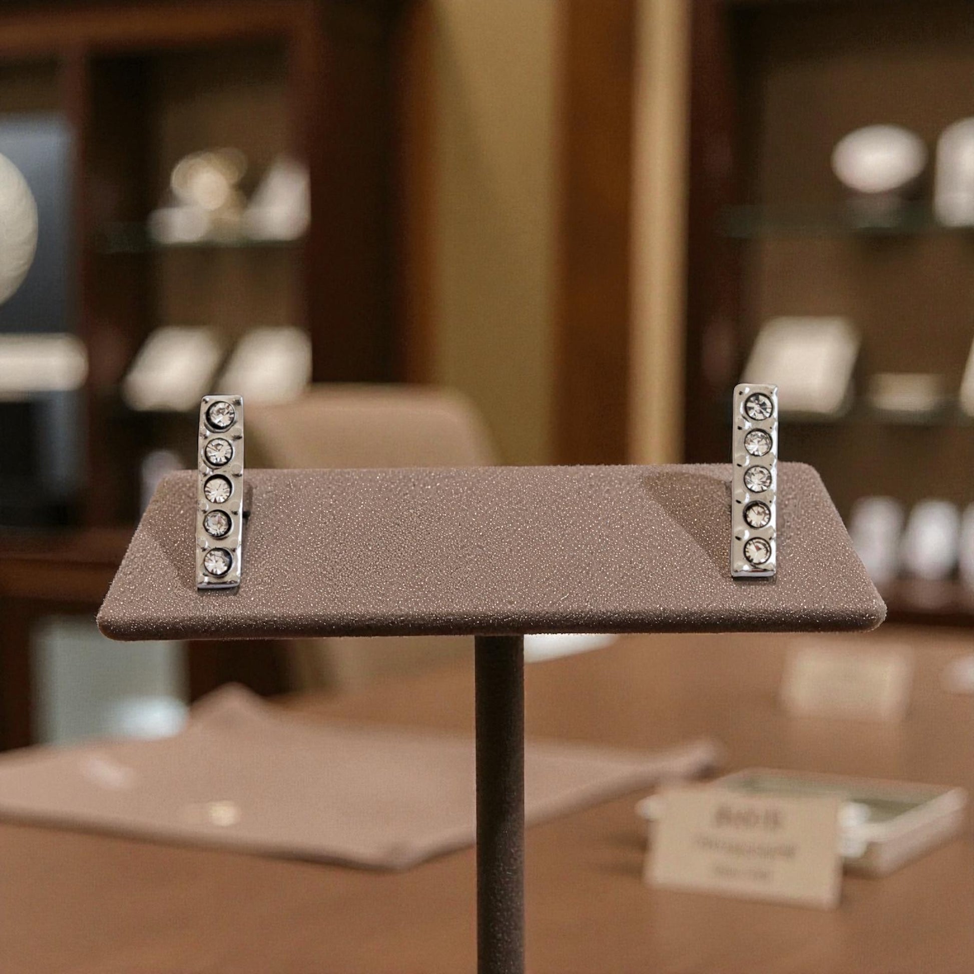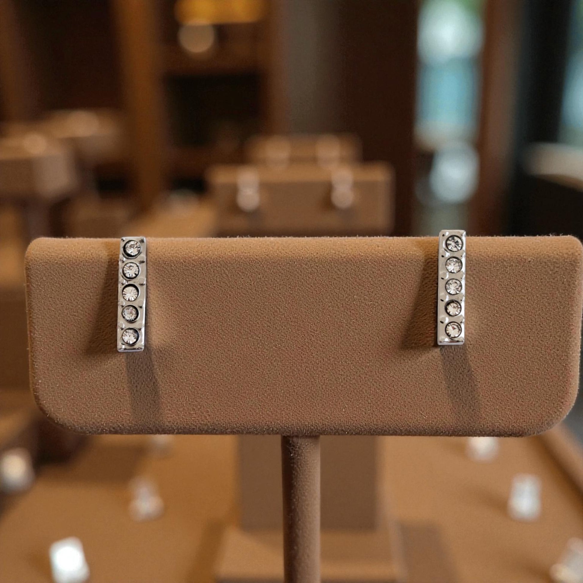 Leur forme fine en bâton, rehaussée de strass délicats, affine le visage et illumine chaque mouvement d'une lumière subtile. En acier inoxydable argenté, elles offrent une brillance durable sans entretien, pour une élégance sans effort.